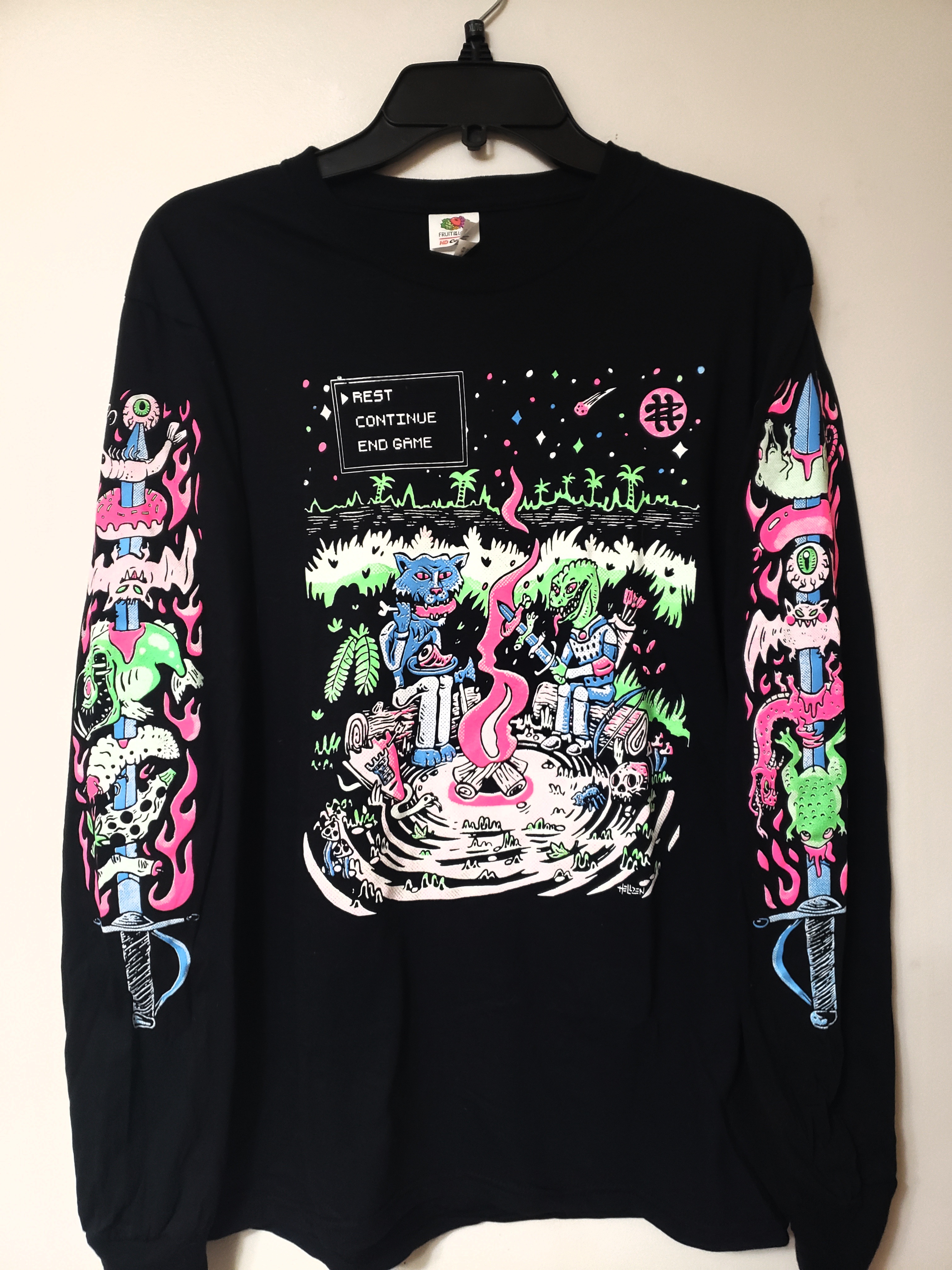 "Bandit Camp" long sleeve, designed and screen-printed by Hellzen. Printed on black Gildan Heavy cotton long sleeve shirts (100% cotton)